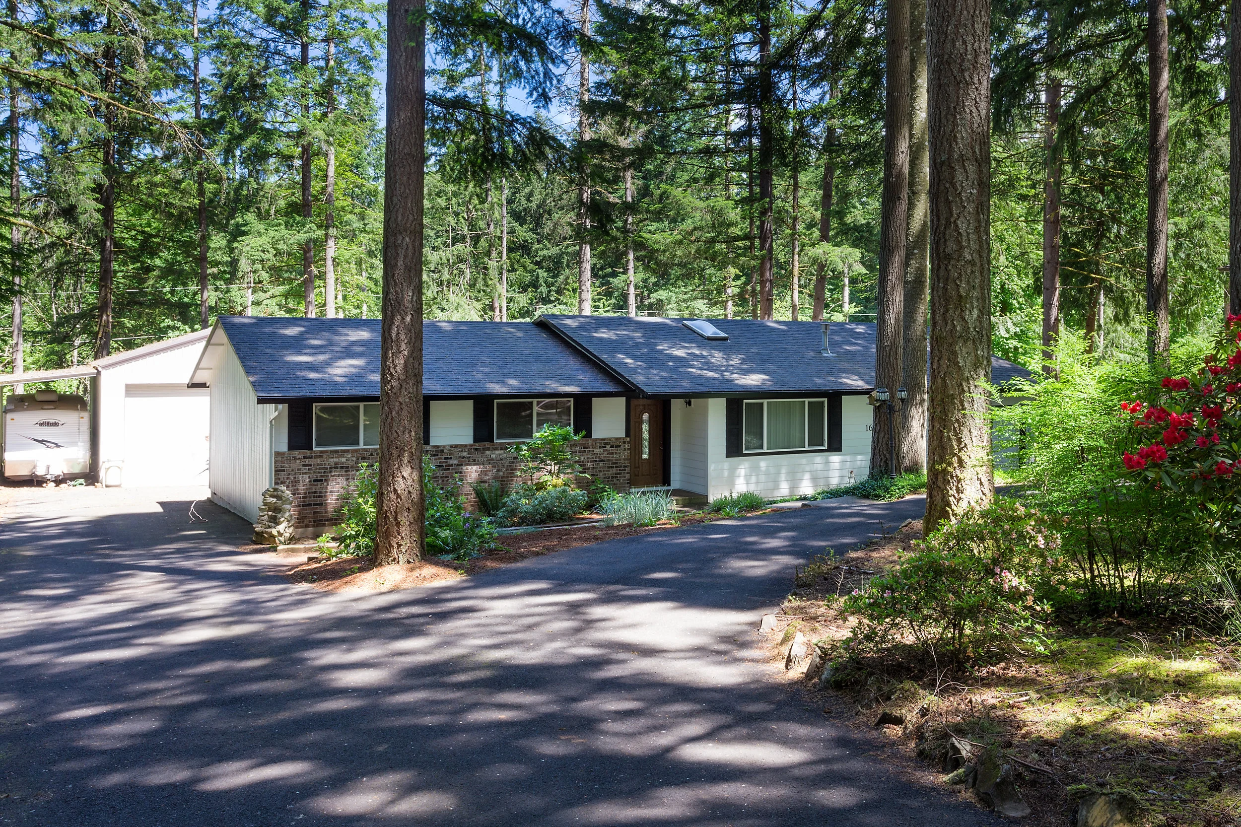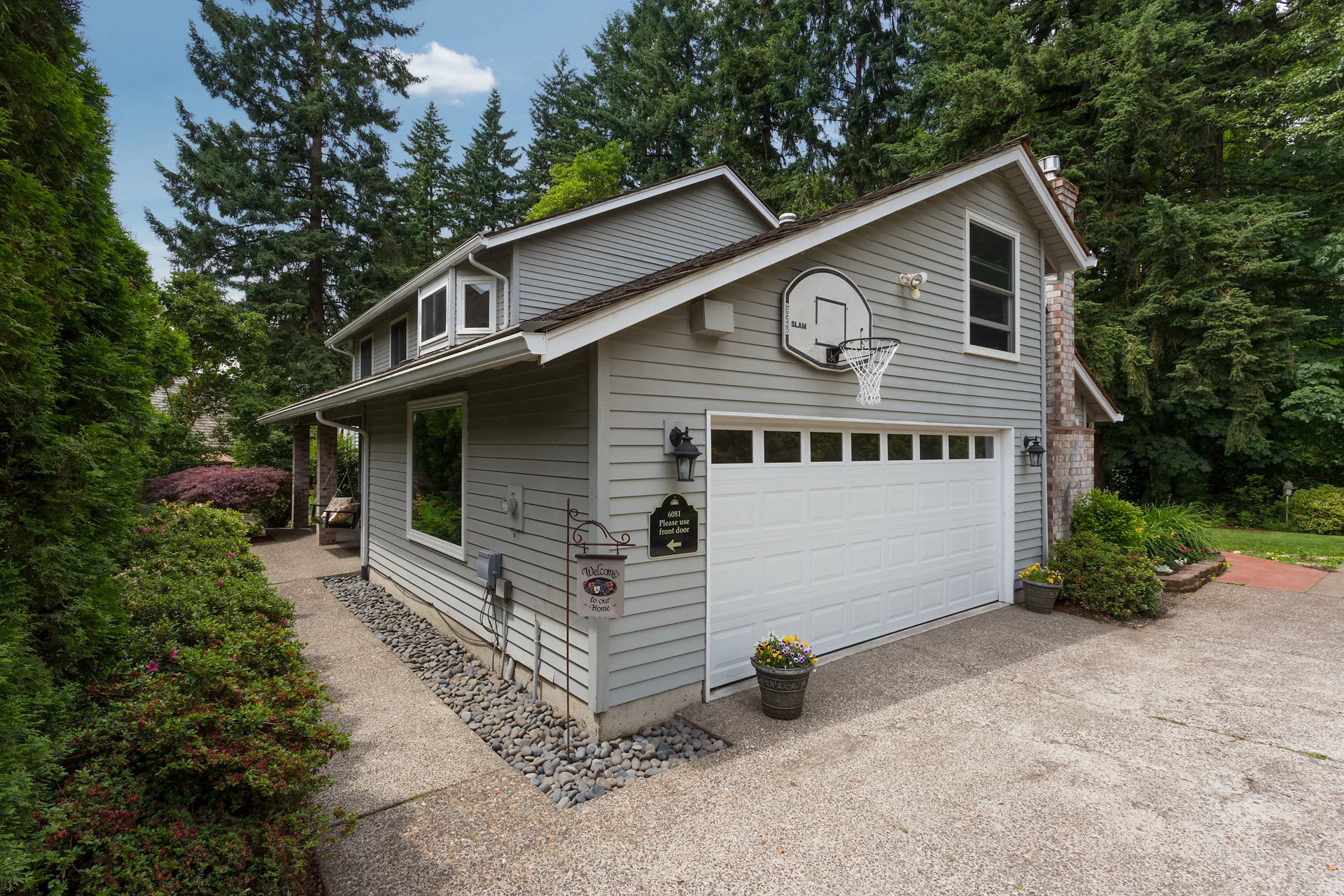 This home is tucked in the corner of a culdesac, and surrounded by trees for a private, secluded, feel.