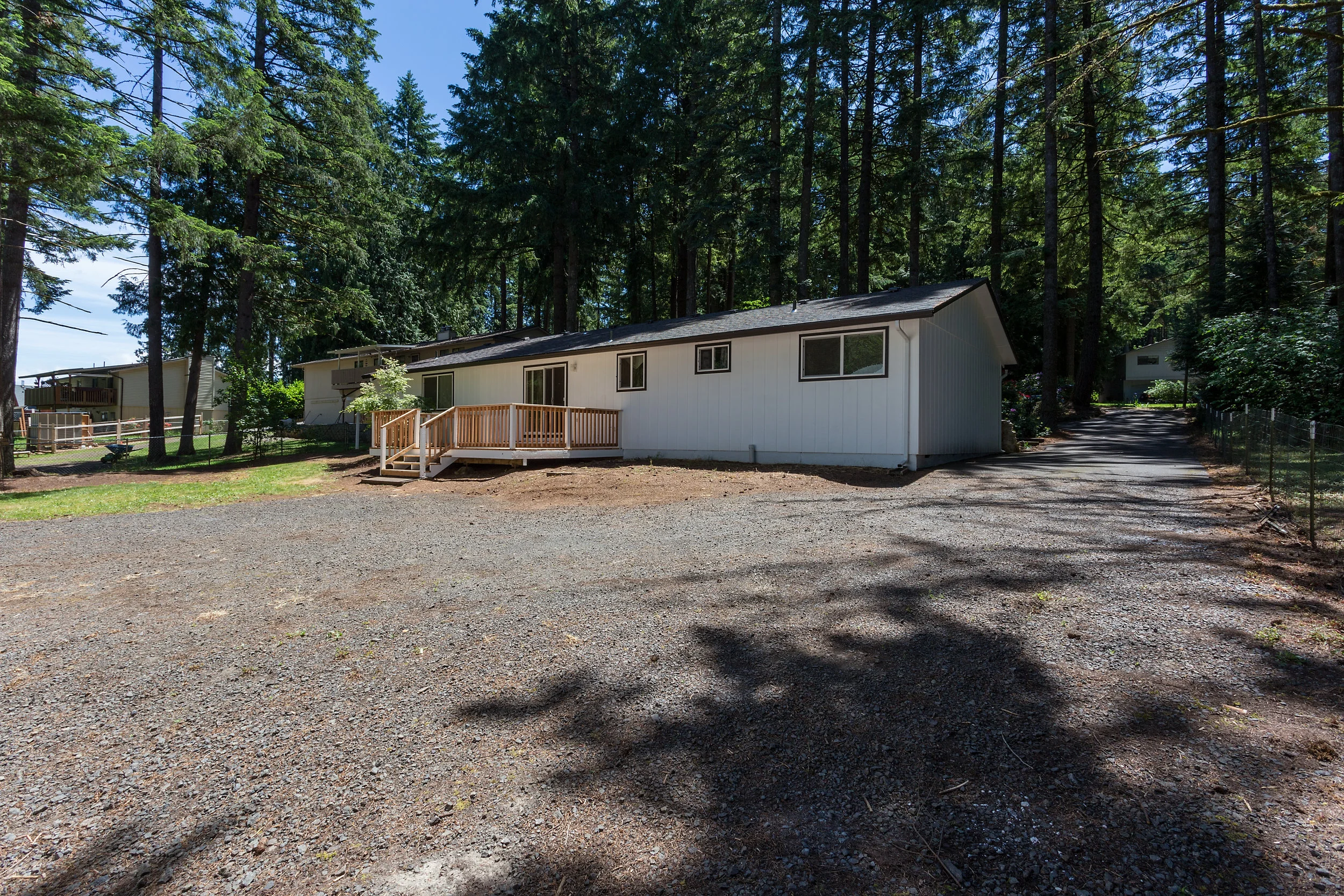 This home is nestled in fragrant pine trees. The scent reminded me of camping with my family. If I lived here, I would be sitting on the deck all the time, just to experience that fragrance!