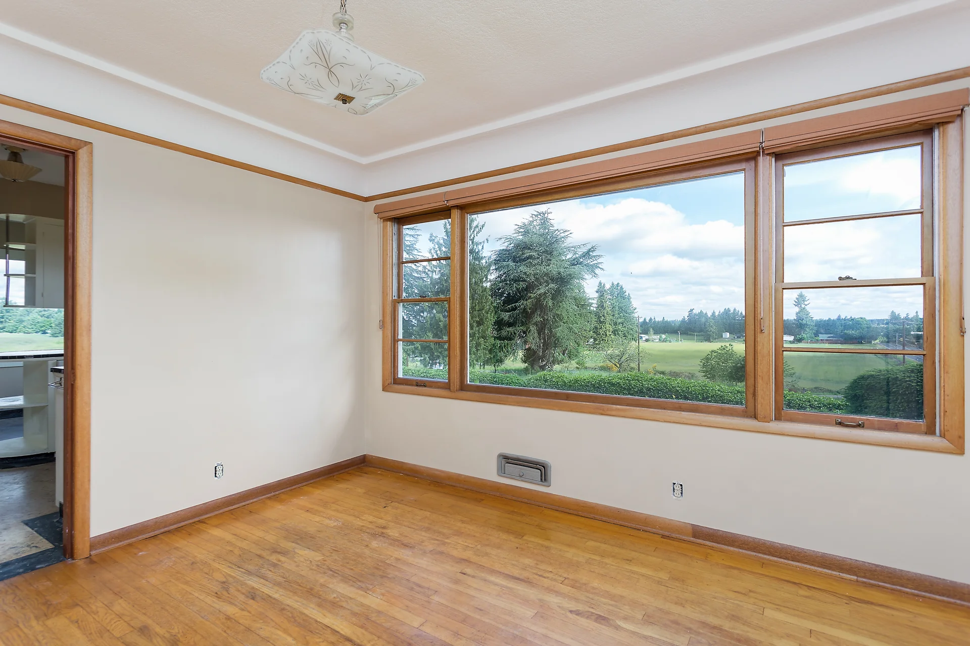 This older home has huge picture windows with a stunning pastoral view.