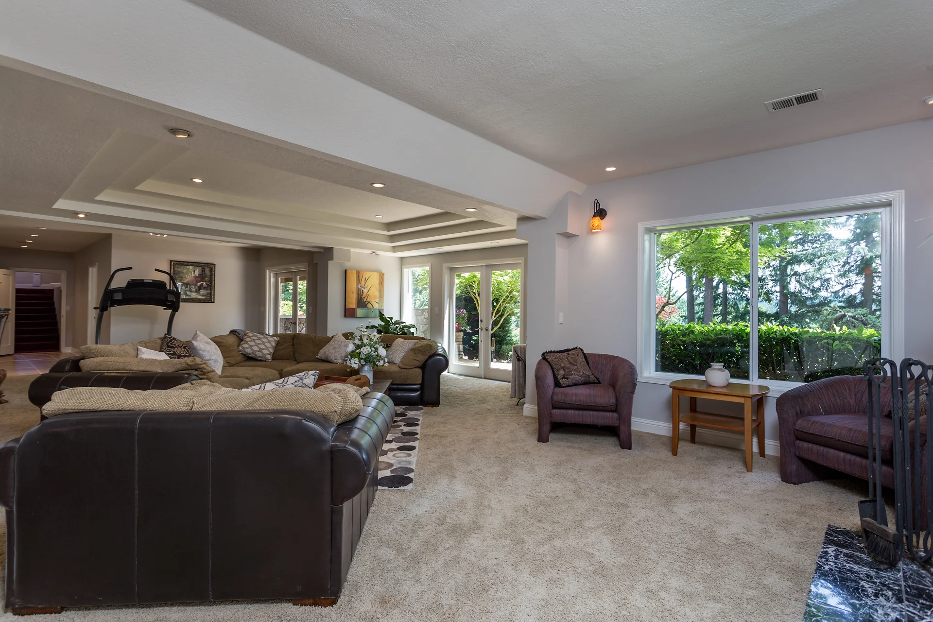 Living room with sliding doors to deck and back yard.